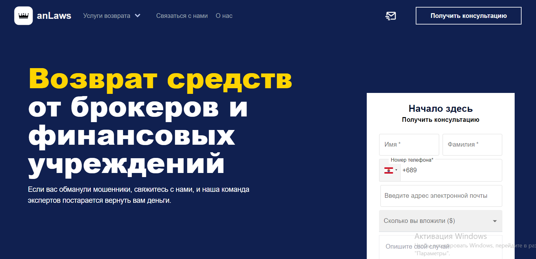 Надежные юридические компании всегда имеют реальный офис, который можно найти в официальных реестрах. Однако anLaws не предоставляет достоверной информации о своих офисах – адреса попросту отсутствуют или являются фиктивными.