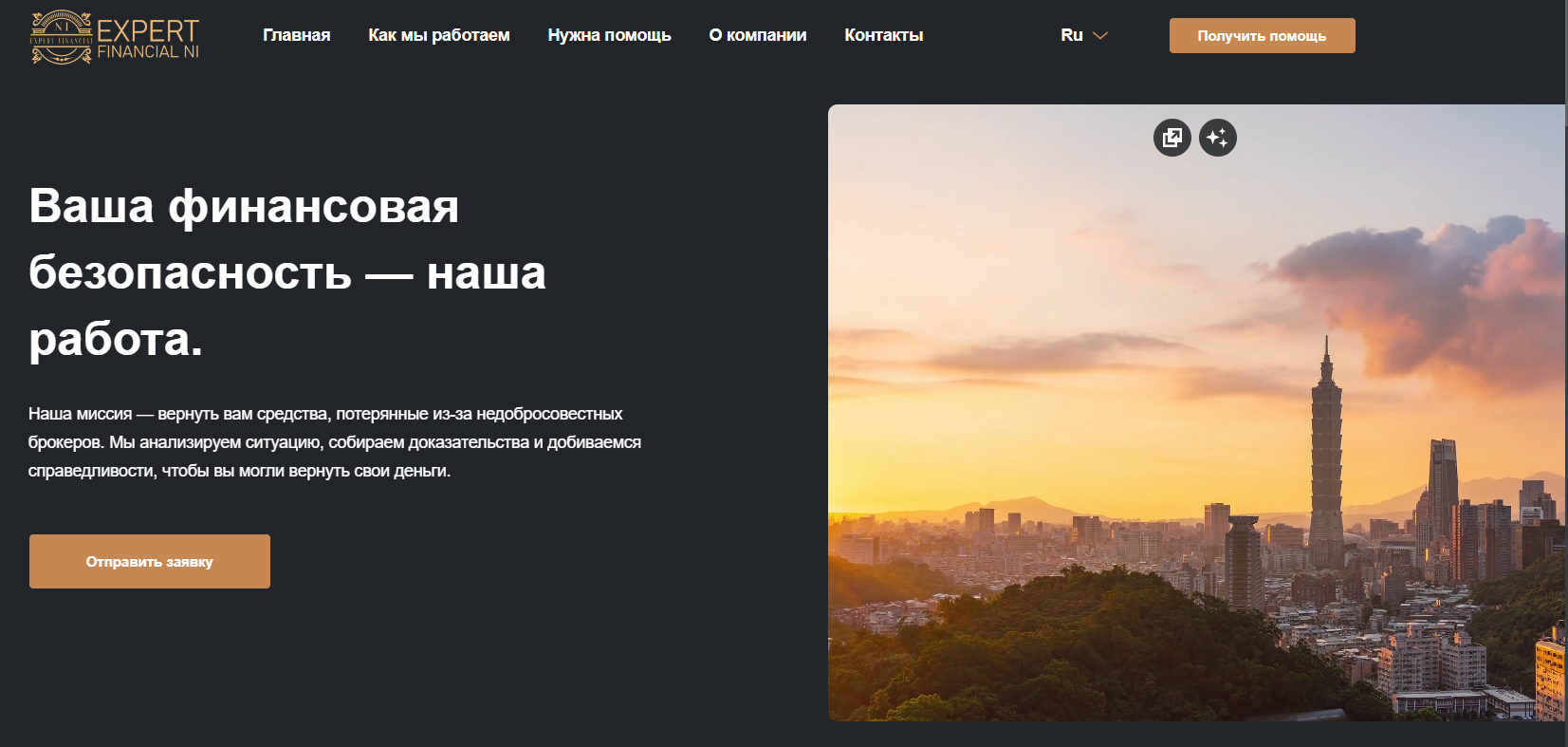 - Минимум информации о компании. У Expert Financial North отсутствуют данные о лицензиях, разрешениях и сотрудниках.