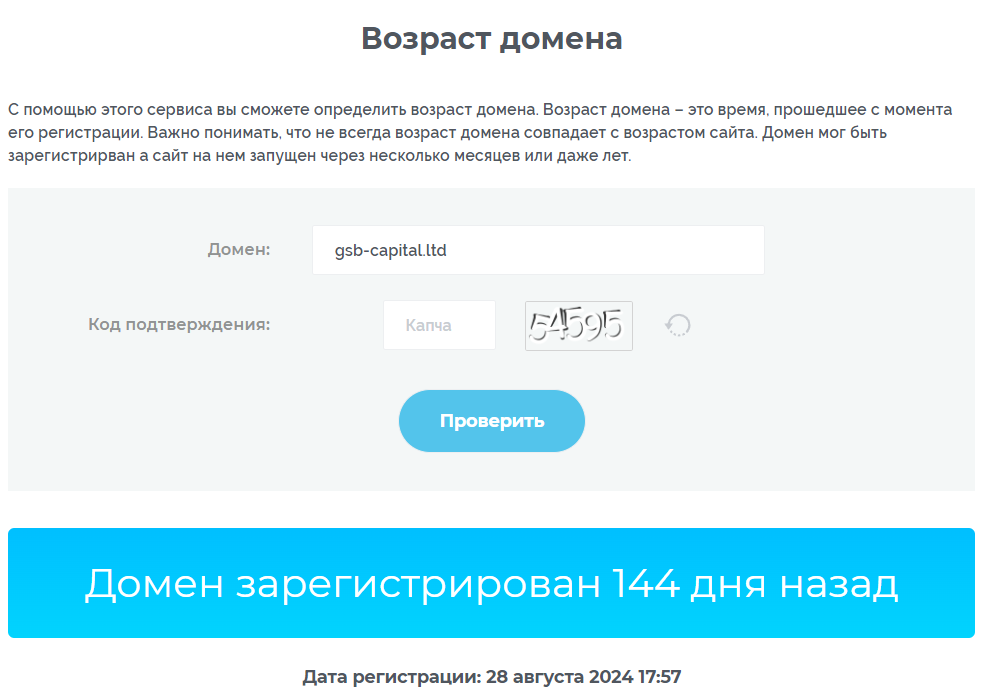 Несмотря на заявления о наличии лицензии от Dubai Financial Services Authority, фактической регистрации GSB Capital LTD в этом органе нет. Более того, проверка домена gsb-capital.ltd показала, что он был зарегистрирован совсем недавно, что вызывает дополнительные подозрения.