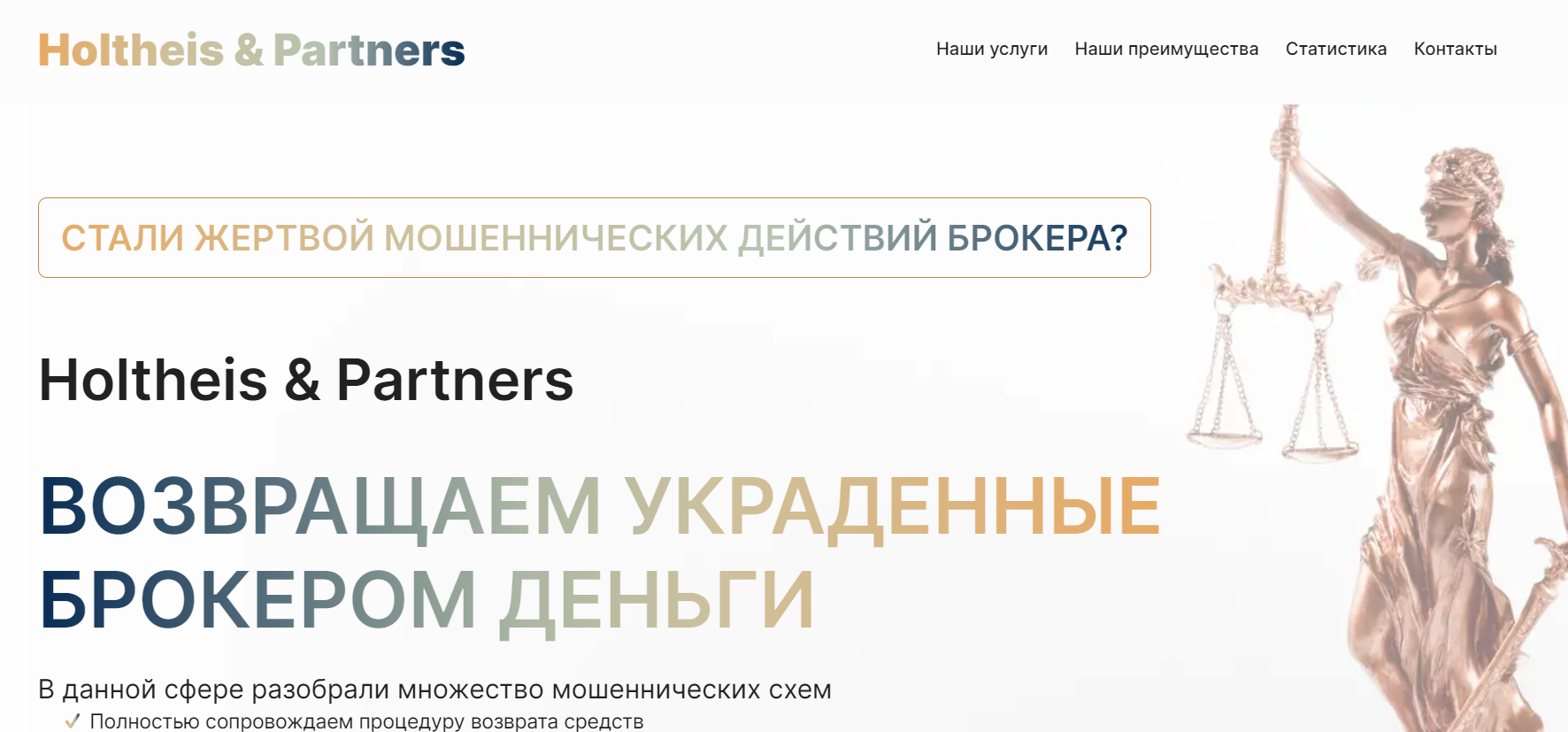 - Проверка контактной информации Настоящие юридические фирмы предоставляют проверенные контакты. Holtheis & Partners указывает телефон +3 161 749 2485 и email [email protected], но все попытки связаться по этим данным остаются без ответа.