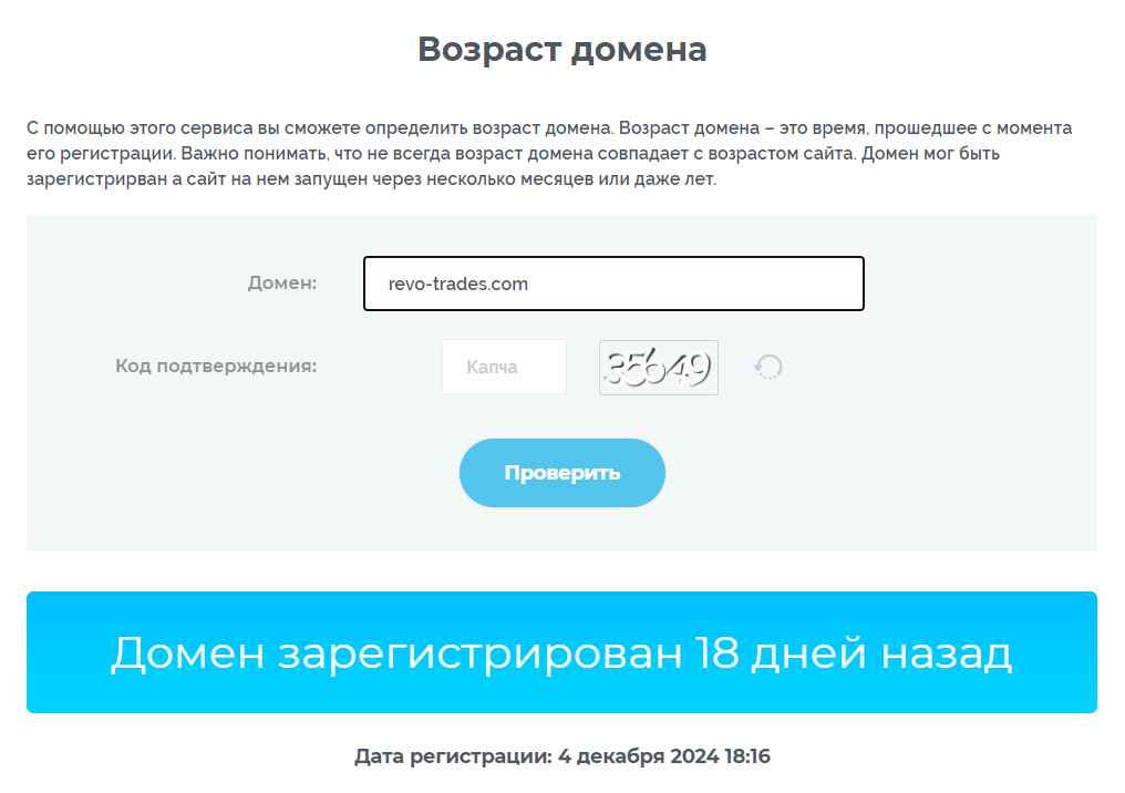 - Создание нового домена. Сайт платформы зарегистрирован недавно, что уже вызывает сомнения.