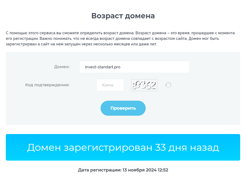 - Недавний запуск домена. Домен сайта создан совсем недавно, что является ещё одним доказательством мошеннической природы проекта.