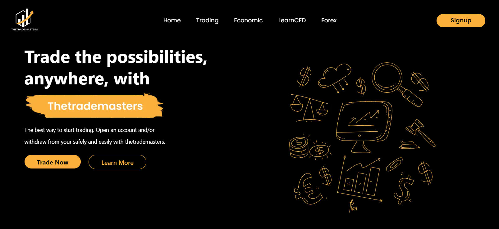 TheTradeMasters рекламирует себя как платформу для успешных инвестиций и торговли. Мошенники используют яркие слоганы, которые нацелены на привлечение новичков и неопытных трейдеров. Среди основных «преимуществ», заявленных на сайте:
