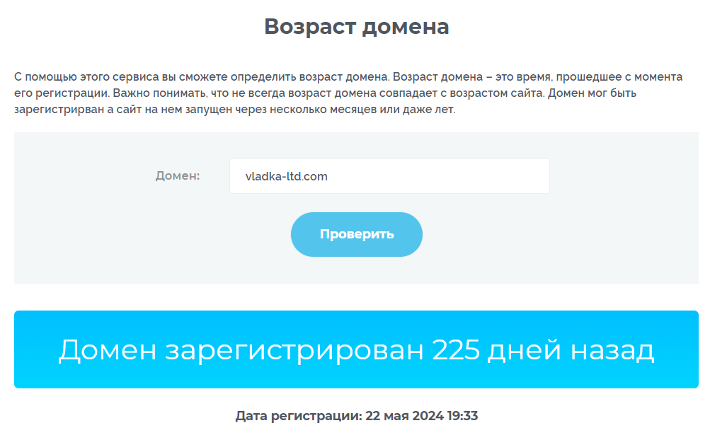 - Возраст домена Домен vladka-ltd.com был зарегистрирован недавно, что вызывает дополнительные подозрения. Мошеннические компании часто используют новые домены, чтобы скрывать свою деятельность и избегать ответственности.